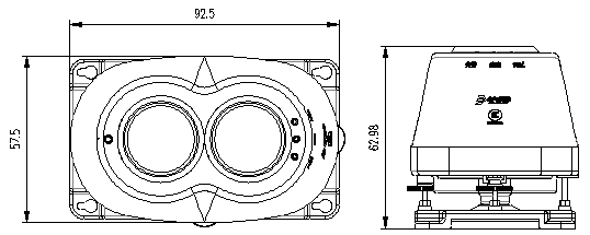| 外形尺寸 | 92.5mm長× 57.5mm寬×62.98mm厚(含底座) |